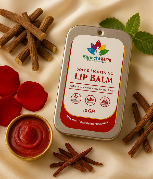 This Ayurvedic lip balm is a delicate blend of Mulethi, Manjistha, cocoa butter, shea butter, and other nurturing herbs, designed to restore your lips’ natural tint and softness. It deeply moisturises, heals cracked lips, and gradually fades pigmentation, revealing a healthy, even-toned pout. Inspired by traditional beauty secrets, it wraps your lips in the healing wisdom of Ayurveda — without a trace of chemicals. Pure, gentle, and powerfully effective.