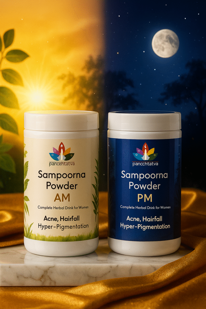 Rooted in ancient Ayurvedic wisdom, this dual-phase herbal drink powder is crafted especially for women. The AM blend awakens your body from within — reducing pigmentation, brightening full-body complexion, easing period pain, and minimizing hair fall. The PM blend calms and restores — balancing hormonal acne, soothing inflammation, and encouraging lush, shiny hair. Each sip is a ritual of self-love, harmonizing your inner rhythms with nature’s healing touch.